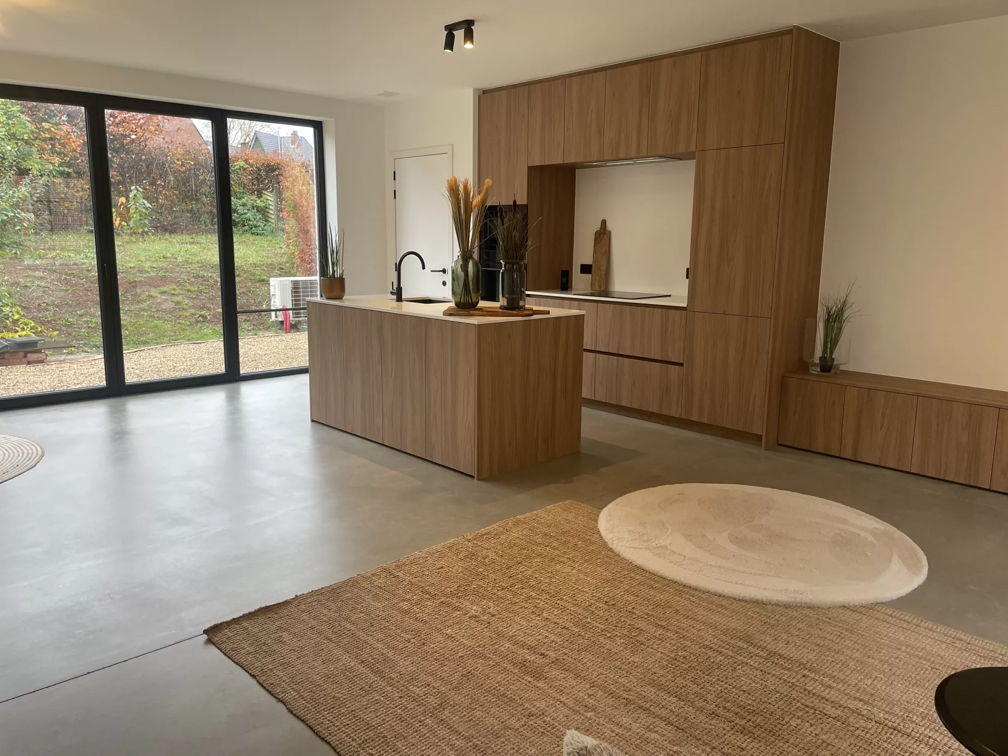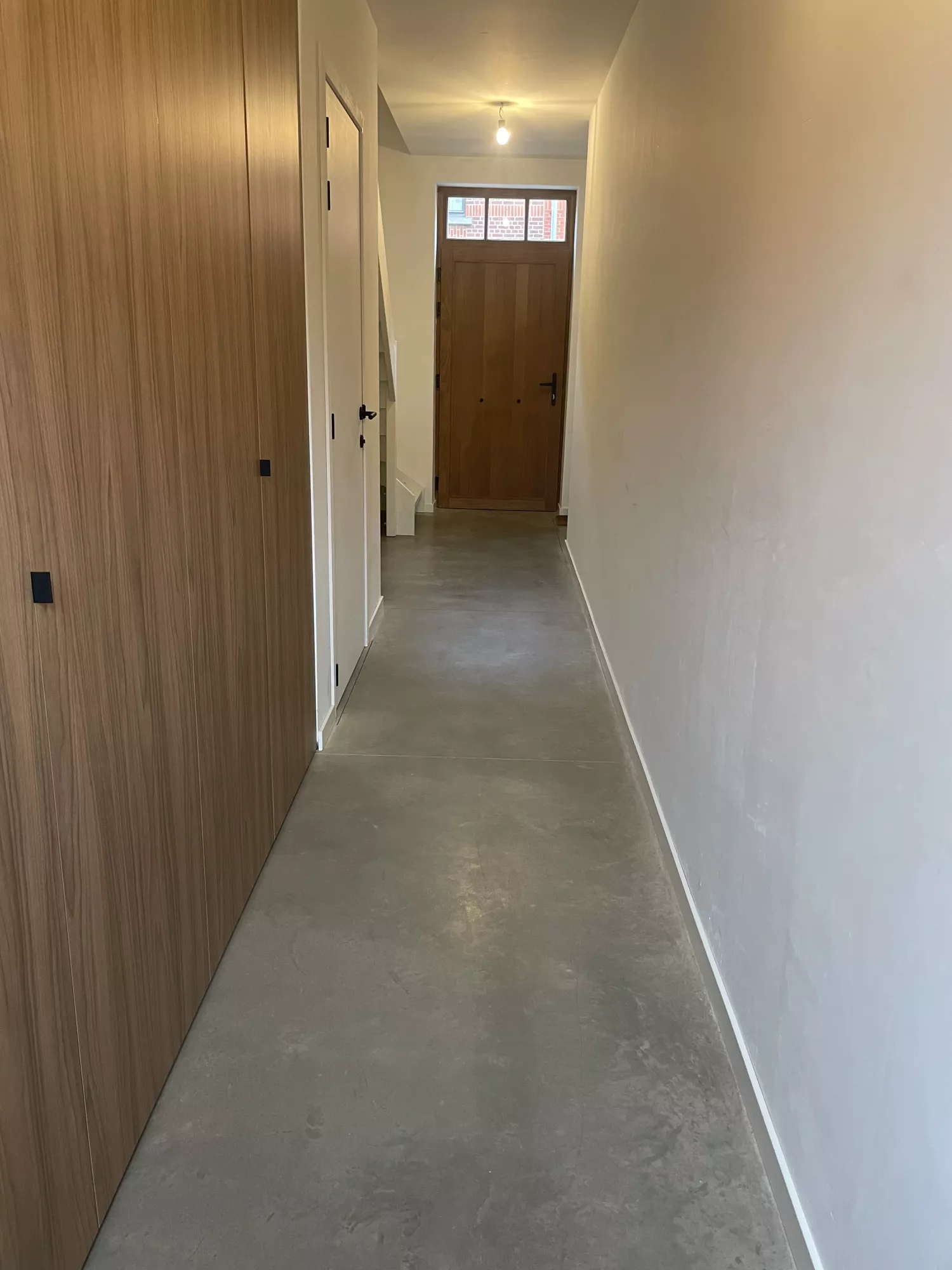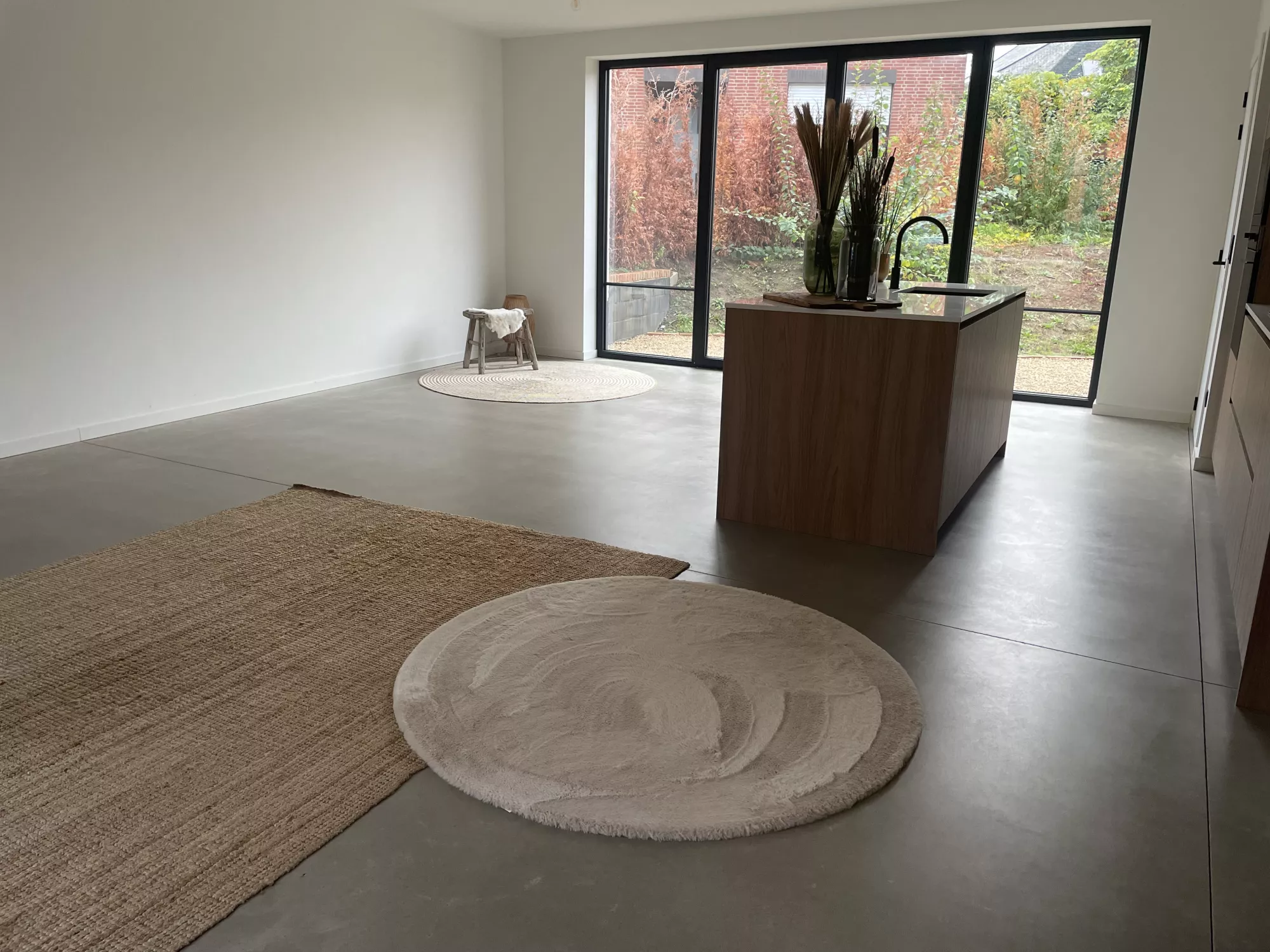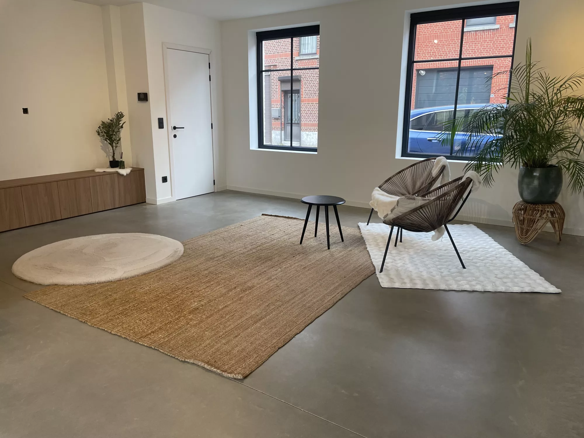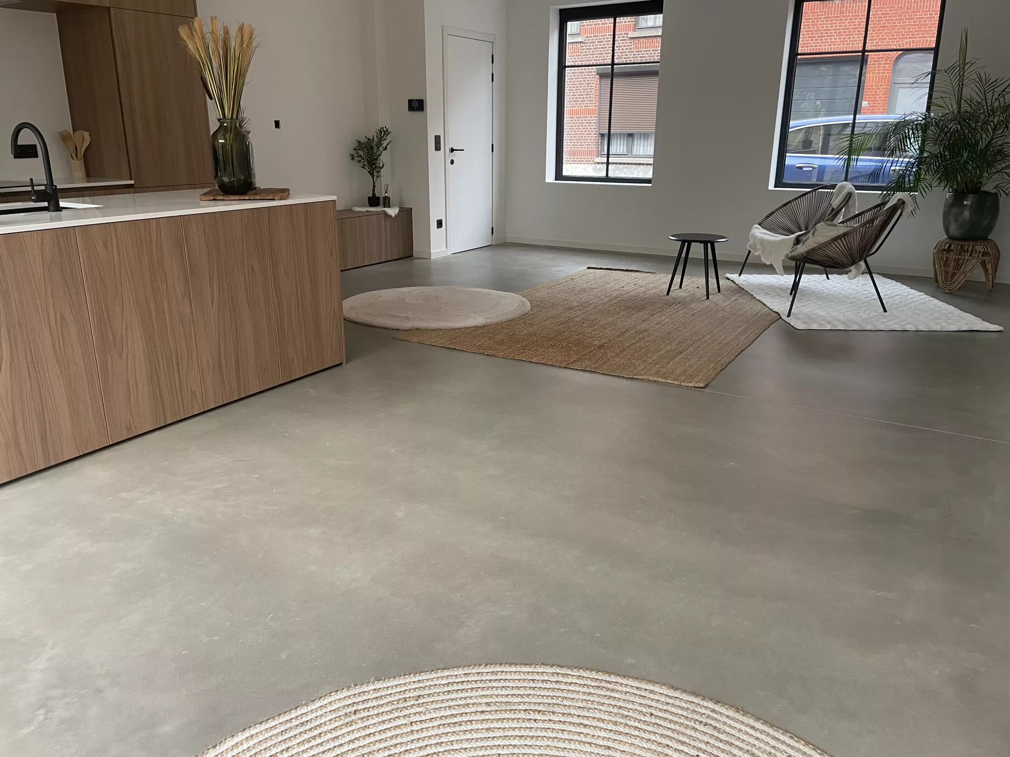 In deze woning werd gekozen voor een stijlvolle, beige getinte betonnen vloer die meteen een warme en gezellige sfeer creëert. De afwerking zorgt voor een rustige, moderne uitstraling en sluit perfect aan bij het interieur. Dankzij de hoogwaardige samenstelling is de vloer niet alleen elegant, maar ook bijzonder duurzaam en onderhoudsvriendelijk. Deze gegoten basis biedt jarenlang wooncomfort en vormt een tijdloze keuze voor wie kwaliteit en esthetiek wil combineren.